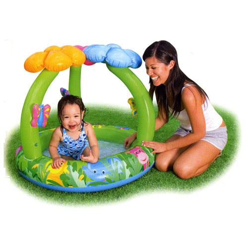 もっとプールで遊べるオモチャ(水鉄砲とか?)が必要なのかしら?